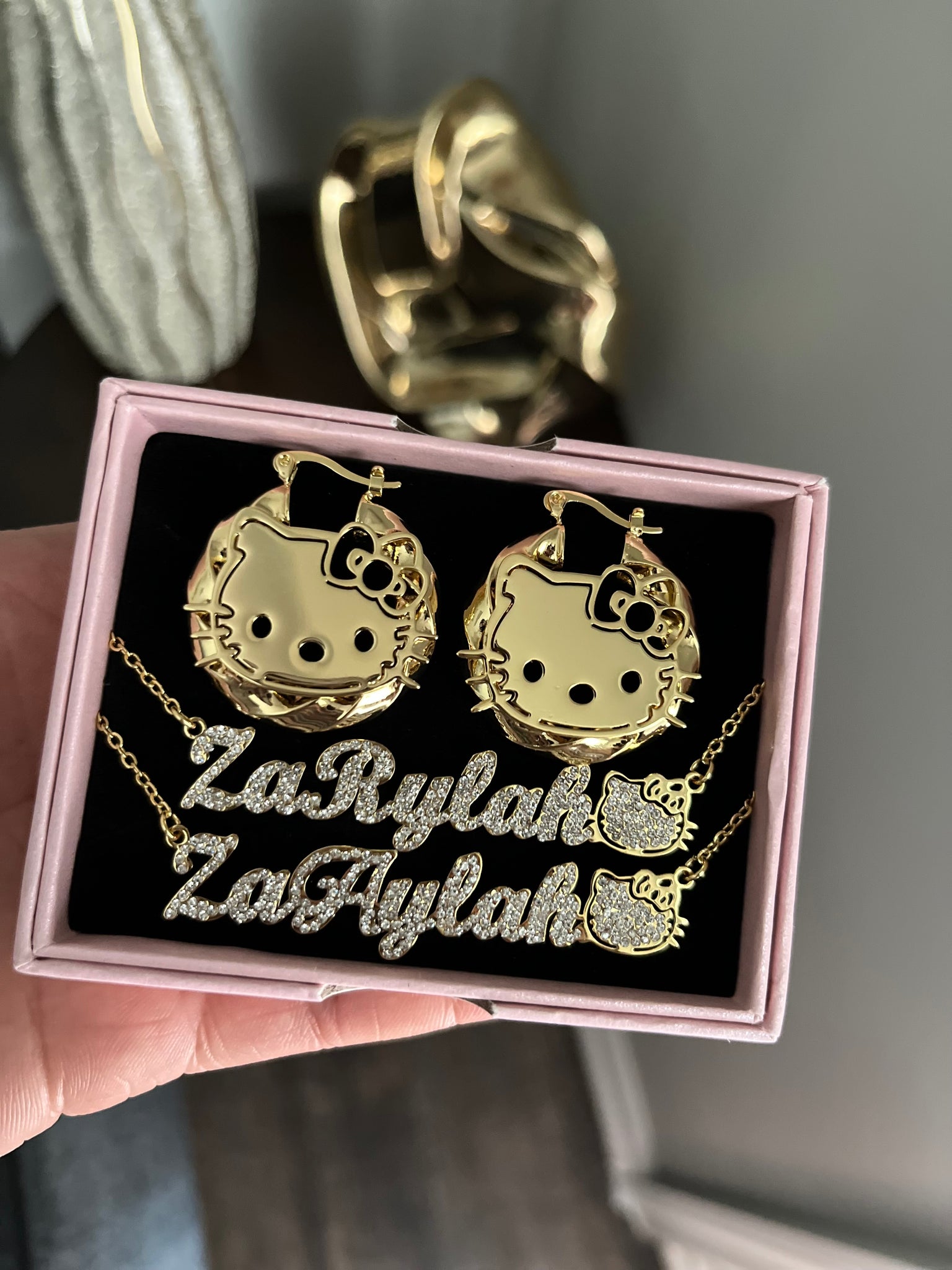 Enter the name you want on your necklace in the custom details box, along with the cartoon character you’d like it inspired by. Adding a name on the earrings is optional. Please be as detailed as possible about how you’d like your jewelry customized.