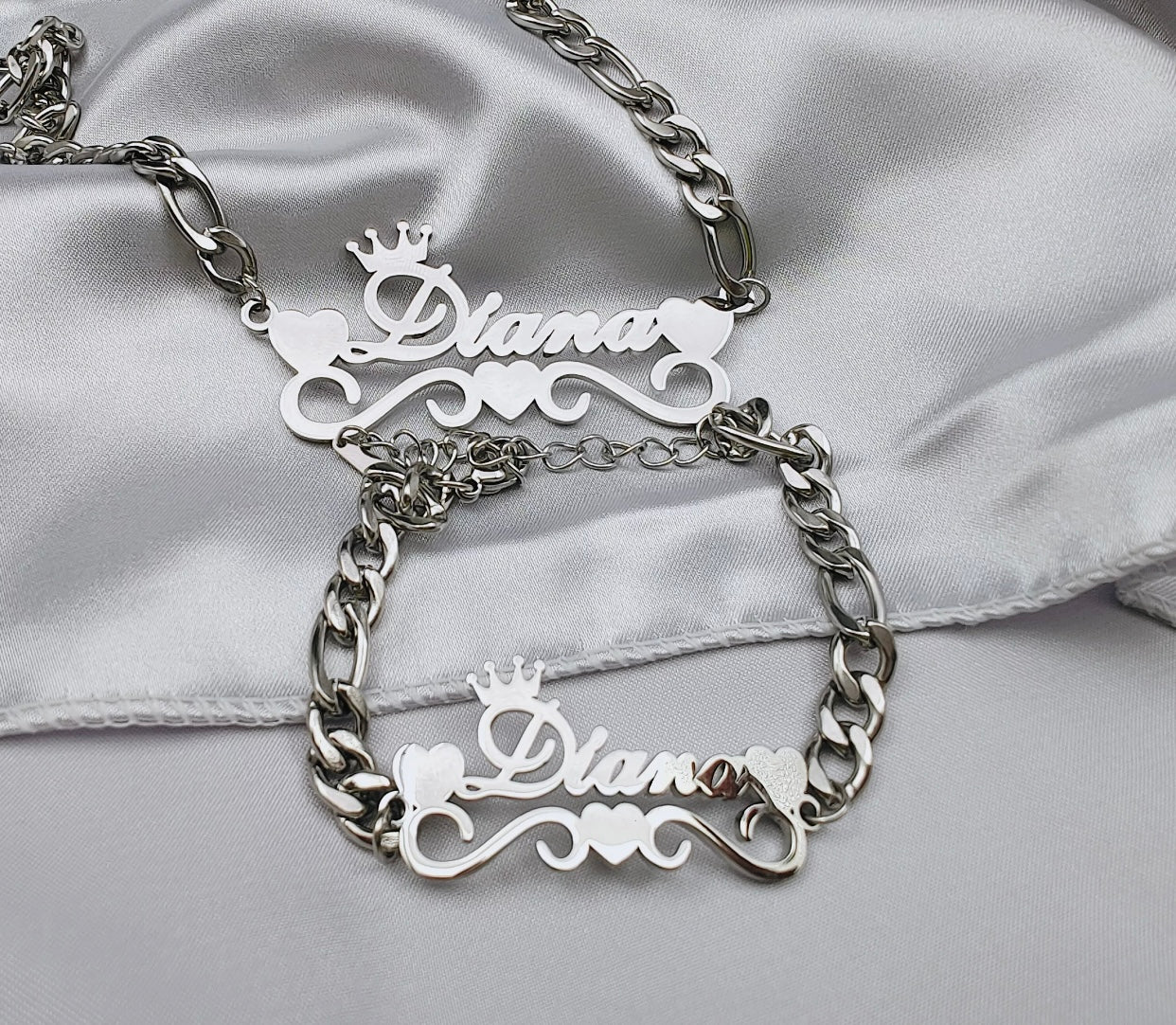 - Type the name you would like on your necklace and bracelet in the custom details box